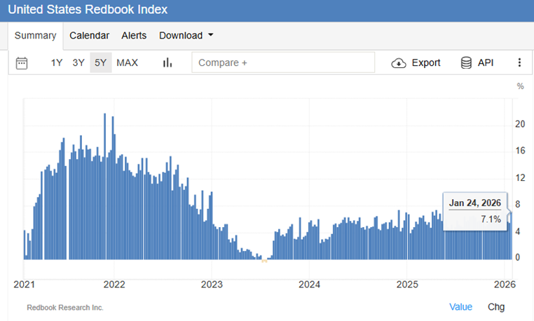 Consumption accounts for roughly two-thirds of GDP growth, and that core piece of the economy has been remarkably steady for the past few years. Earnings reports last week from the likes of American Express, Visa, and Mastercard also confirmed robust year-end 2025 retail trends—something we discussed leading into the holiday shopping season.